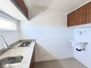 Distribuído em sala de estar com uma bela sacada e churrasqueira, cozinha com armários, pia em granito e cooktop de 2 bocas, 01 dormitório com guarda-roupas e cabeceira para cama e banheiro com armário e espelho.