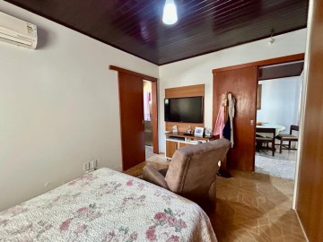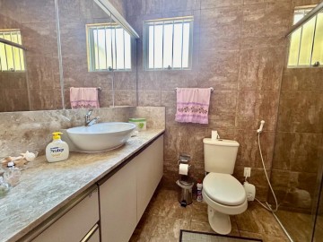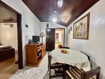 Distribuída em sala de estar e jantar, ampla cozinha, churrasqueira, 3 dormitórios e garagem.