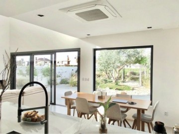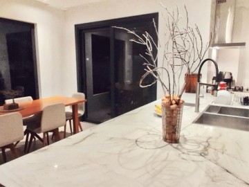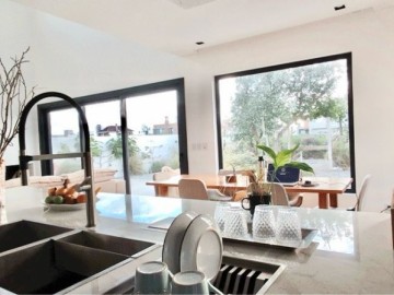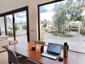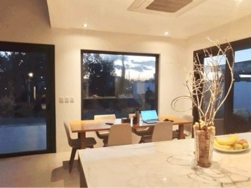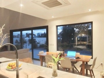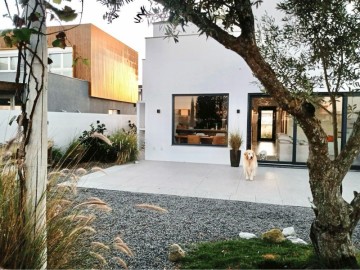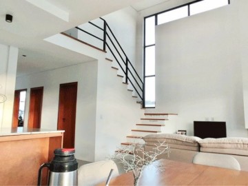 Excelente sobrado distribuído em sala de estar e jantar, cozinha gourmet integrada a sala, lavabo, um escritório ou quarto, garagem para dois carros fechada com portão americano e um belo pátio arborizado.