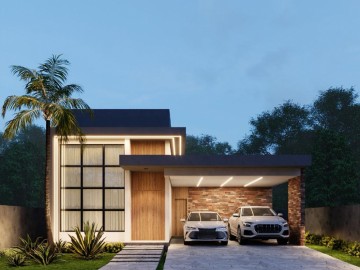 Projeto contemporâneo muito bem distribuído numa bela casa térrea, sala e estar amplos com espera para calefação, depósito, lavanderia, cozinha ampla, três suítes sendo uma com closet.