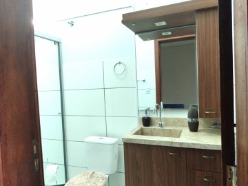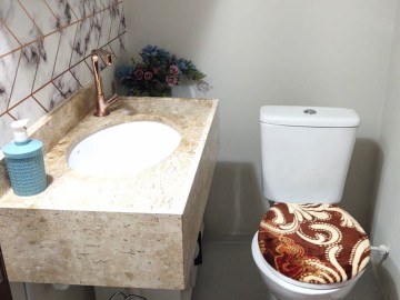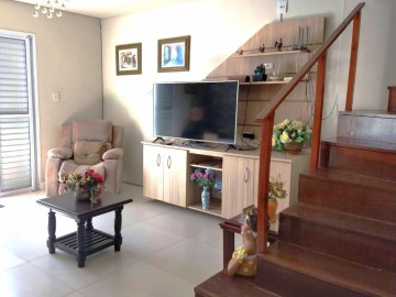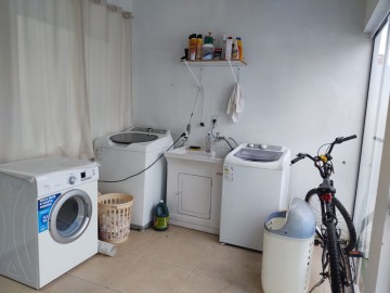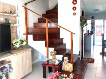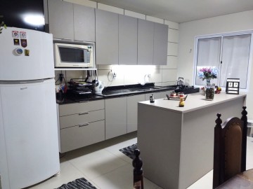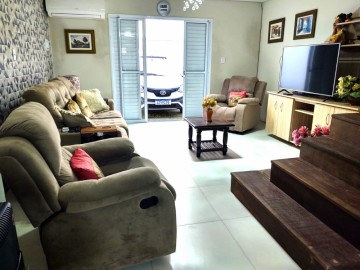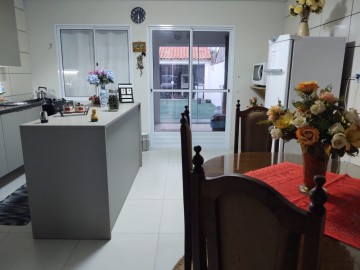 Distribuída em sala de estar, sala de jantar integrando a cozinha americana, lavabo, garagem, pátio com churrasqueira fechada com vidros e lavanderia.