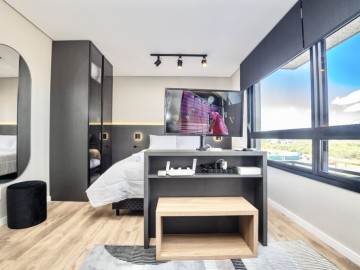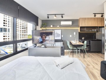 Apartamento Ultra Compacto, mobiliado, é uma ótima opção para jovens em seu primeiro imóvel, estudantes e viajantes.
