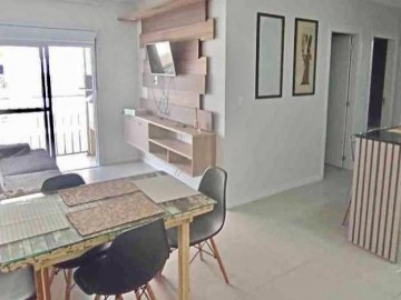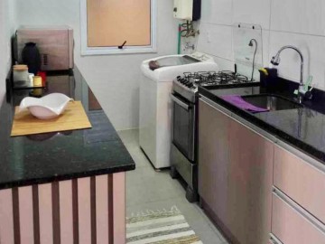 Possui sala de estar com cozinha integrada, sacada com churrasqueira, 2 dormitórios, banheiro e vaga de garagem.