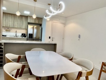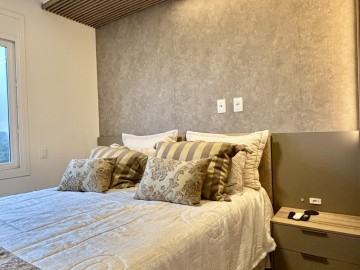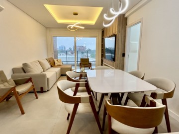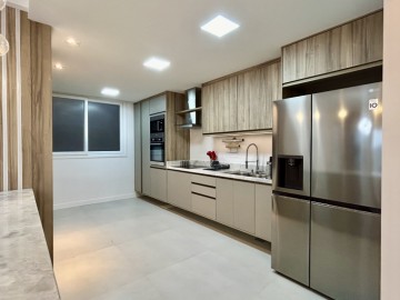 Apartamento com 02 dormitórios sendo 01 suíte, sala, cozinha com churrasqueira, área de serviço, banheiro social, sacada e 02 vagas de garagem.