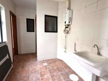 A cozinha está equipada com móveis planejados e há uma dependência completa com banheiro.