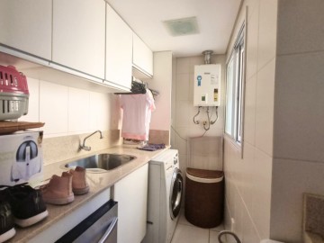 O imóvel em distribuído em sala de estar e jantar, sacada com churrasqueira, 2 dormitórios sendo 1 suíte, banheiro social, cozinha e lavanderia e 1 vaga.