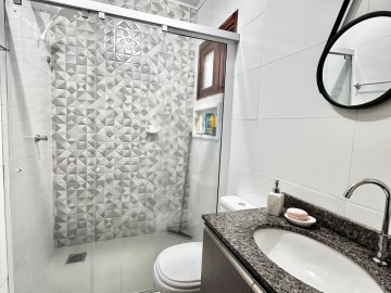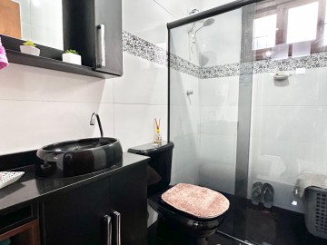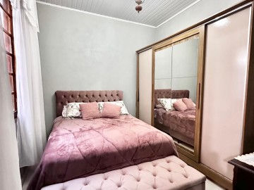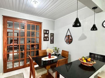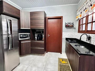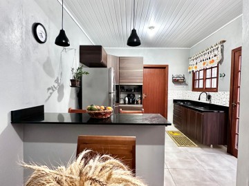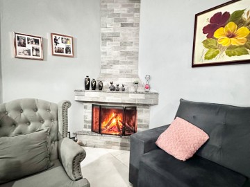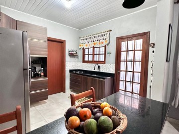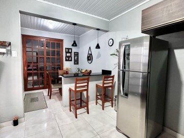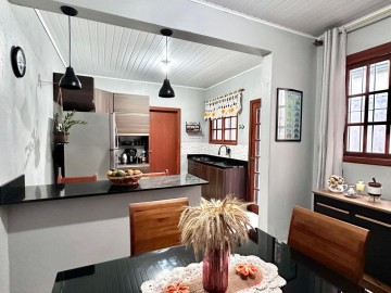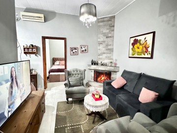 Possui sala de estar com lareira, sala de jantar, lavabo, banheiro completo, 2 dormitórios, sendo uma suíte, cozinha, despensa, lavanderia e garagem.