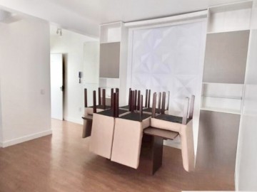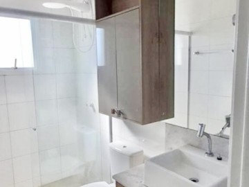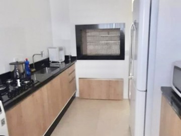 Distribuído em sala de estar e jantar, cozinha com móveis planejados e com churrasqueira, área de serviço, dois quartos sendo um suíte.