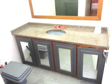 Distribuído em sala com 2 ambientes, jantar e estar, cozinha com armários aéreos, balcão e cooktop. Área de serviço com armário e aquecedor a gás, dois quartos amplos com armários planejados e ar-condicionado, banheiro social com lindo balcão em granito e box de vidro.