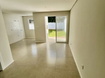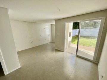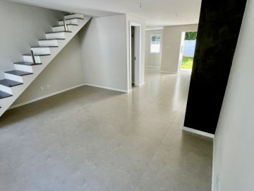 Casa 3 quartos, sendo 1 com suíte, sala com 2 ambientes, lareira, lavabo, cozinha americana, área de serviço, área com churrasqueira e amplo pátio.
