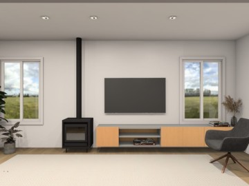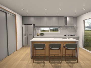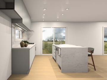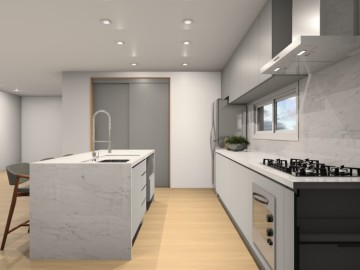 Pavimento térreo distribuída em hall de entrada, ampla sala de estar e jantar integrando a cozinha, benheiro e escritório.
