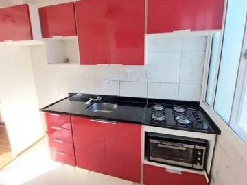 Distribuído em sala, cozinha, 2 dormitórios e banheiro, cozinha planejada com granito, cubas em inox e cooktop.