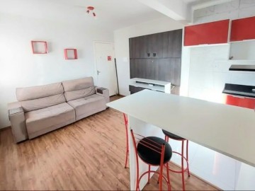 Mobiliado com split, mesa, painel para TV e sofá retrátil na sala, armários, box de vidro temperado e chuveiro no banheiro. Telas mosqueiteiras nas janelas em alumínio e redes de proteção.