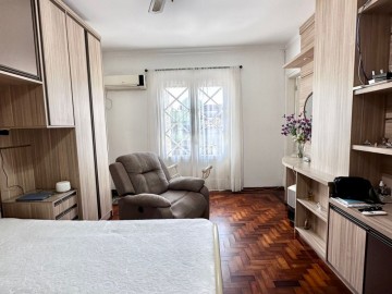 Distribuída em sala de estar e jantar, escritório, lavabo, sala íntima com lareira, ampla cozinha, lavanderia, dependência com banheiro.