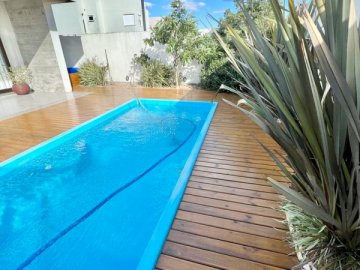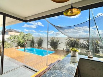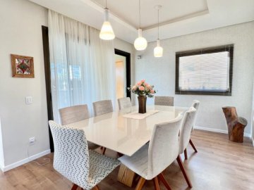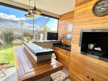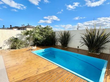 Casa muito bem distribuída, pavimento térreo composto hall, lavabo, sala de estar e jantar com calefator, cozinha com fogão a lenha, área de serviço, espaço gourmet, piscina com deck.