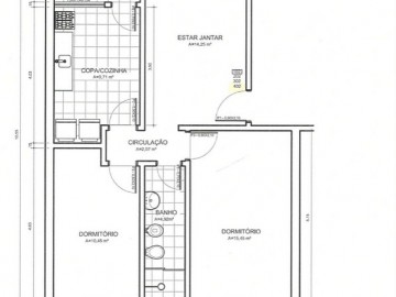 Distribuído em sala 2 ambientes, cozinha planejada, área de serviço separada, dois dormitórios e 1 banheiro.
