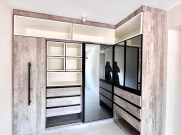Com 3 dormitórios, sendo 1 suíte com closet, sala de estar integrada à cozinha com churrasqueira, banheiro social, área de serviço e 1 vaga de garagem.