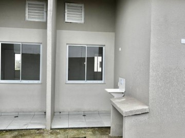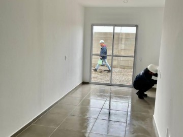 Possui sala de estar, cozinha integrada, 2 dormitórios, banheiro e pátio. Uma vaga de garagem.