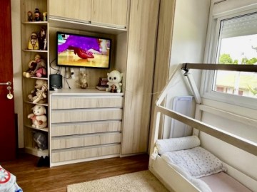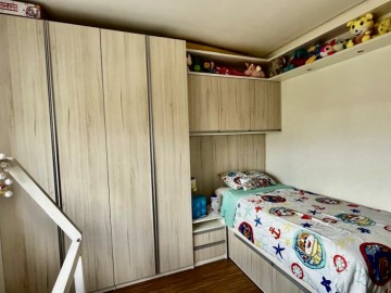 Segundo andar três quartos sendo um suíte com móveis planejados e banheiro social.