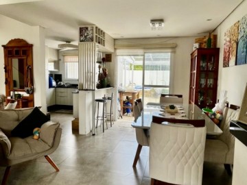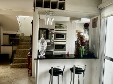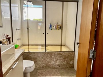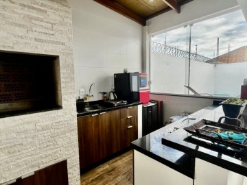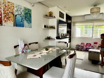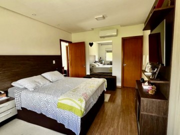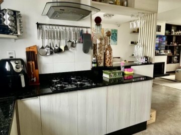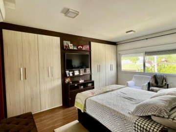 Distribuída em sala de estar/jantar com lareira, lavabo, cozinha americana com móveis planejados, lavanderia, garagem para 2 carros, pátio com píscina aquecida, espaço gourmet com churrasqueira virado para a piscina.