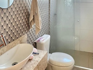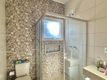 No pavimento superior, 3 dormitórios, sendo uma suíte com closet e um banheiro completo.