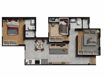 Casa de 60,58 m² distribuída em 3 dormitórios, sendo 1 suíte, sala integrada com a cozinha e um banheiro, na Colina do Sol.