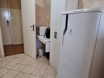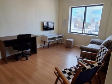 Apartamento com sala ampla, cozinha, lavanderia, dois quartos e um banheiro. Fácil acesso com elevador no centro da cidade.