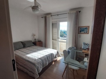 Distribuído em sala de estar e jantar, lareira, sacada, lavabo, três dormitórios sendo um suíte, dois banheiros auxiliares, cozinha, dependência completa, piscina com área gourmet completa e uma vista privilegiada, sol norte e oeste, uma vaga de garagem.