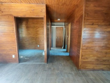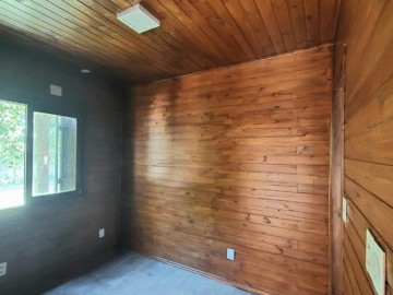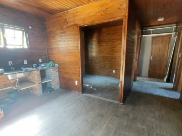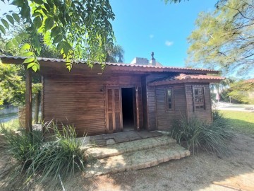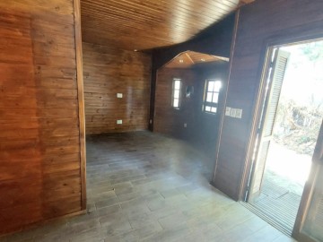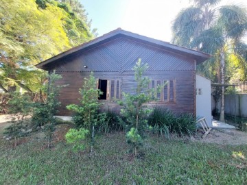 Cabana mista em terreno arborizado, distribuída em sala de estar com cozinha integrada, sala de jantar, banheiro social, 3 dormitórios, sendo 1 suíte com closet e espaço para home office.