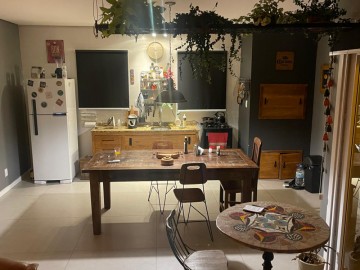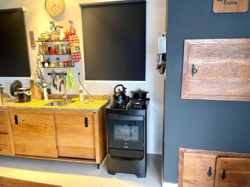 Distribuída em amplo living integra a sala de estar e jantar com lareira, 2 dormitórios, sendo 1 suíte com closet, banheiro social e lavabo, lavanderia completa e uma cozinha estilo colonial. Para momentos de lazer, há uma churrasqueira e pátio.