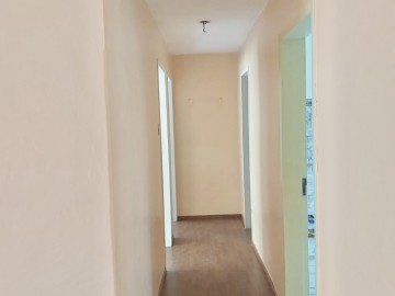 Dsitribuído em sala de estar, cozinha, área de serviço, dois dormitórios e banheiro.