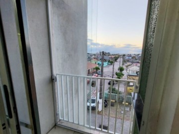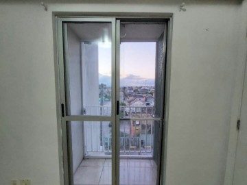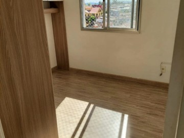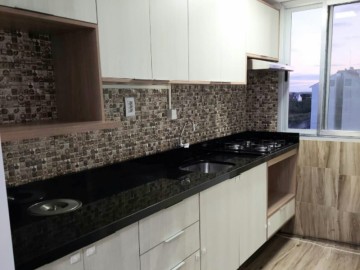 Distribuído em sala conjugada com a cozinha, dois quartos e um banheiro.
