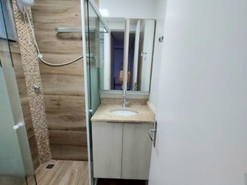 Possui sacada fechada com vidro, churrasqueira revestida em granito preto São Gabriel e com tampa de madeira; Todo o apartamento com teto rebaixado em gesso, com lâmpadas embutidas e sanca com mangueira de led. Pisos laminado e porcelanato. Banheiro com box de vidro, chuveiro, armário com cuba embutida e aéreo com espelho, tudo planejado. Quarto de casal planejado, com lâmpadas de led embutidas acima da cabeceira da cama e ar condicionado Cônsul Inverter 12.000Btus.