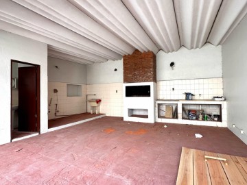 Amplo espaço gourmet com churrasqueira e banheiro.