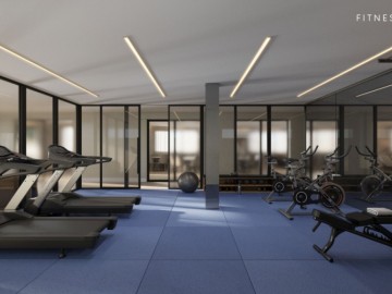 Distrikt Fitness: área destinada à prática de atividades físicas, com academia completa e quadras para esportes.