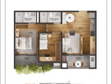 Área Total: 90m² (R$ 6.877/m²)Área Privativa: 74m²