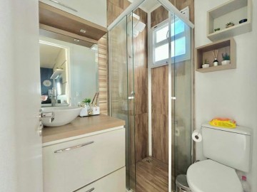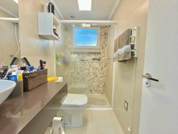 Iluminação inteligente (Alexa), fechadura eletrônica, câmeras de monitoramento, ar condicionado no quarto de casal, painel na sala com nichos e varanda envidraçada com portas de correr.