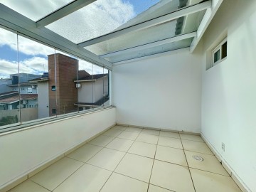 No segundo pavimento, dois quartos um deles com sacada com cobertura em vidro, banheiro.