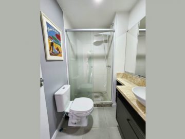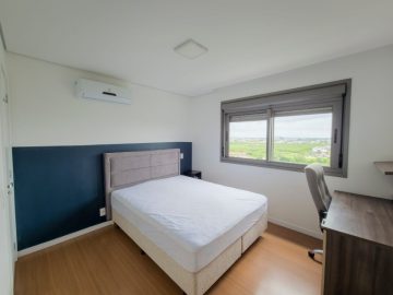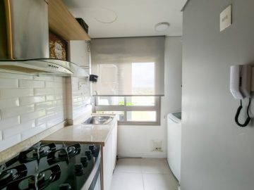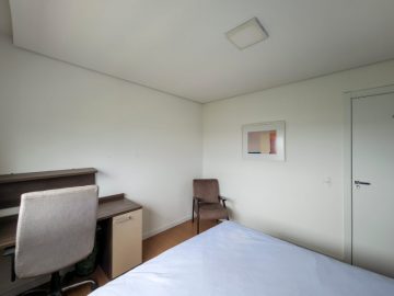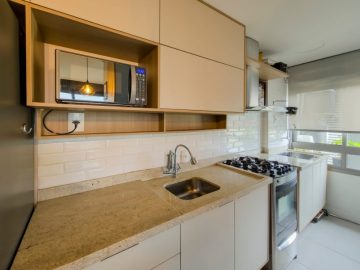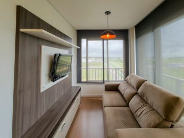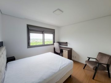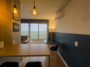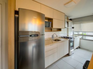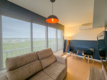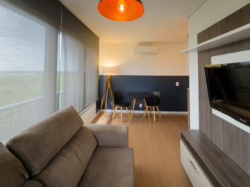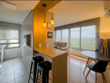 O apartamento fica totalmente mobiliado e equipado com eletrodomésticos, pronto para morar.