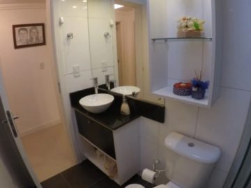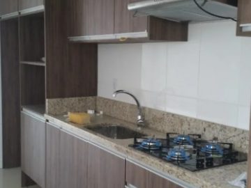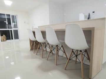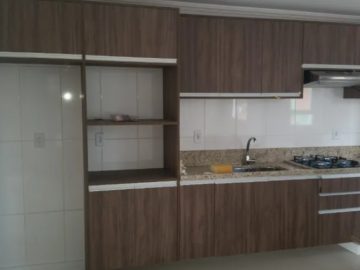 Distribuído em sala de estar, cozinha, área de serviço, banheiro social, 3 dormitórios, sendo uma suíte e sacada com churrasqueira. Possui duas vagas cobertas.
