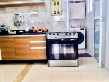 Distribuída em sala de estar e jantar, cozinha integrada, lavanderia, área gourmet e garagem para três carros.