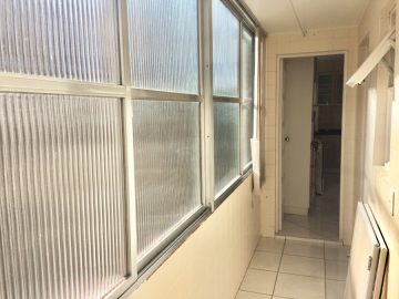 Distribuído em sala de estar com sacada, cozinha, área de serviço, dois dormitórios, banheiro social e um lavabo.