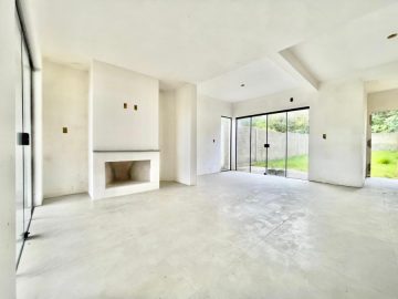 Distribuída em ampla sala de estar e jantar, lareira, lavabo, cozinha integrada a sala, janelões que possibilitam um ambiente ensolarado com visão para área verde.