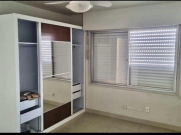 Possui sala de estar, sala de jantar, cozinha com móveis planejados, área de serviço, 2 dormitórios, um banheiro mobiliado e uma vaga de garagem.