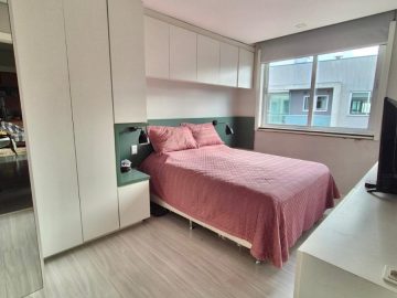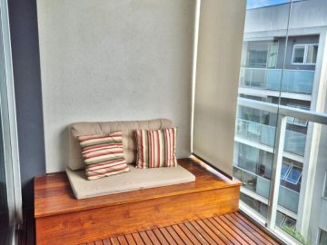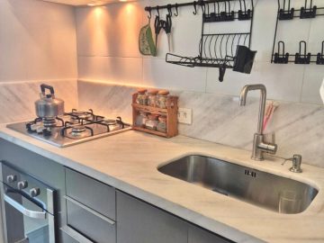 Distribuída em sala de estar e jantar, sacada com churrasqueira, cozinha amaricana, área de serviço, 2 dormitórios, sendo 1 suíte, 1 banheiro.