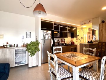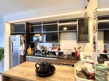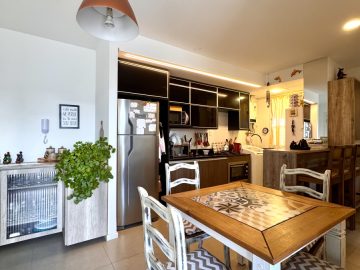 Apartamento todo mobiliado, distribuído em 02 dormitórios, 01 banheiro, sala de estar e jantar, cozinha americana, sacada e garagem coberta, medindo 50.25m² de área privativa.