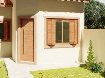 Casa em contrução, com dois dormitórios, teto em PVC, aberturas de madeira, terreno murado, calçada interna,