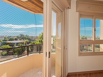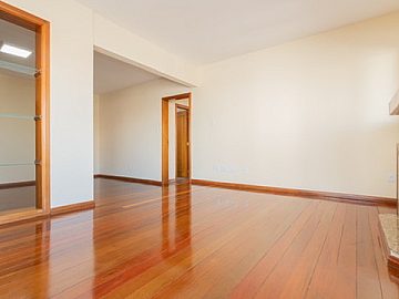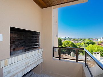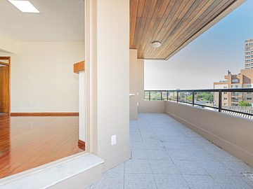 Excelente apartamento distribuído em ampla sala de estar com dois ambientes e lareira, além de uma aconchegante sacada com churrasqueira.