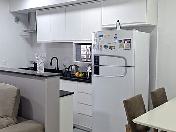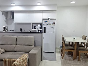 Apartamento distribuído por 02 dormitórios, sendo 01 suíte, 01 banheiros, sala de estar e jantar, cozinha americana, sacada com churrasqueira e 1 vagas de garagem.