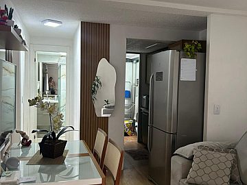 Imóvel com dois dormitórios, cozinha planejada, banheiro com box de vidro, estacionamento com vaga fixa, sacada com churrasqueira e área de serviço coberta.